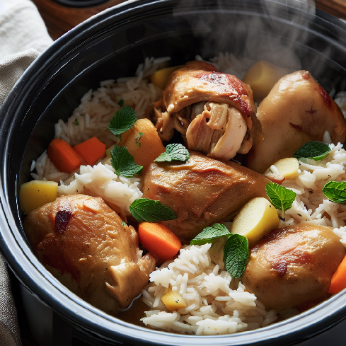 חמין עוף ואורז הוא מתכון מנחם המשלב שוקי עוף בתיבול עם תפוחי אדמה וגזר, הכל מבושל בבישול איטי. המנה נשארת עסיסית ומשביעה, עם טעמים שמתמזגים היטב במהלך הבישול הארוך. מומלץ להגיש את המנה החמה עם סלט טרי בצד