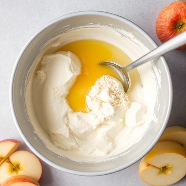 מערבבים עוד פעם וגם מוסיפים את התפוחים, להשאיר קצת תפוחים בחוץ לקישוט בזמן הטיגון