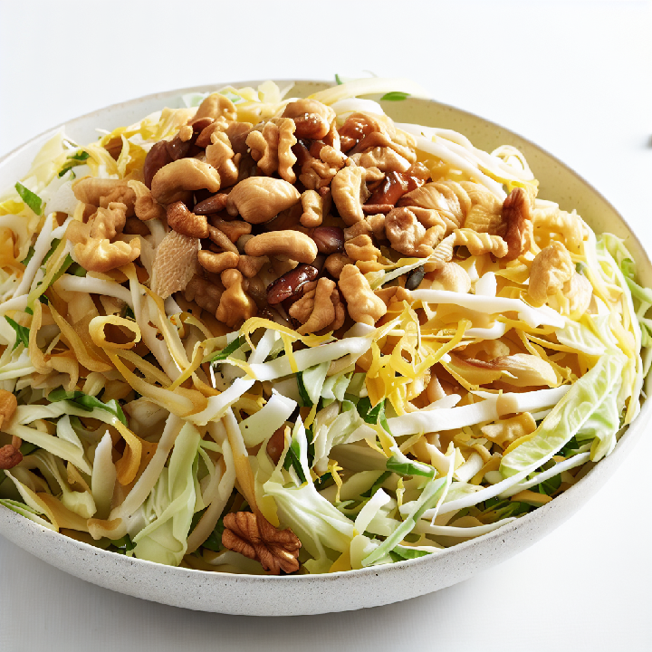 סלט רענן ופריך שמבוסס על רצועות כרוב דק עם רוטב סויה, חומץ ושמן. תוספת אגוזים וגרעינים קלויים מביאה פריכות נהדרת, מה שהופך אותו למנה מושלמת שתמיד גונבת את ההצגה.