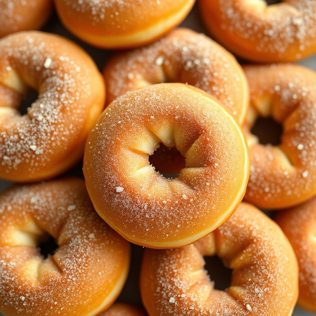 דונאטס אפויים עם טעם עשיר של אגוז מוסקט, בצק רך שמאפיית אותו עד זהוב ומצופים בסוכר קינמון. דונאטס אלו יכולים להיות אפויים או מטוגנים, ומספקים פינוק קל וטעים, עם זמן הכנה קצר.