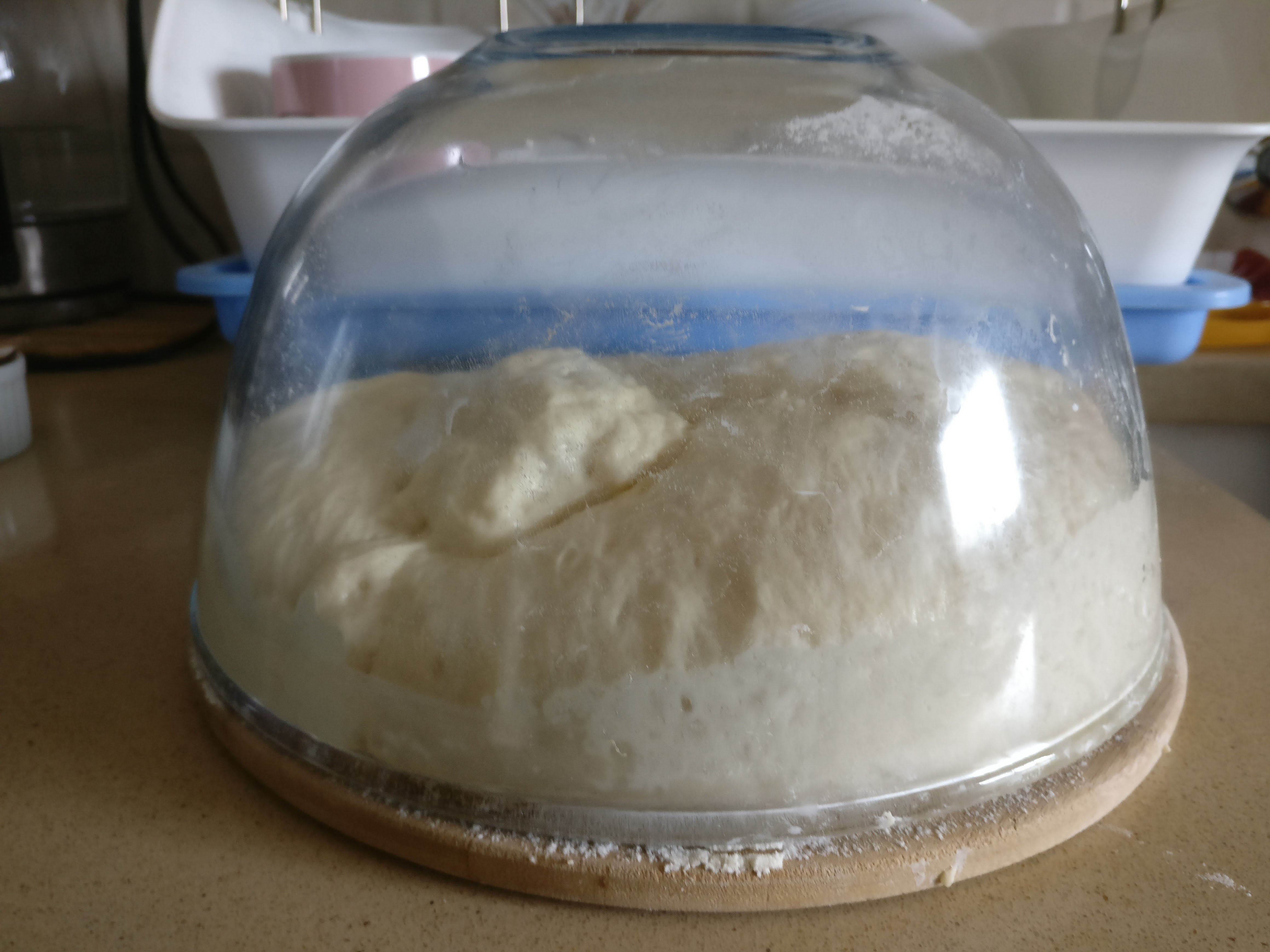 כאשר התכנית הושלמה, תצקו את הבצק הרטוב על קשר מקומח וכסו בקערה, השאירו לנוח 20 דקות